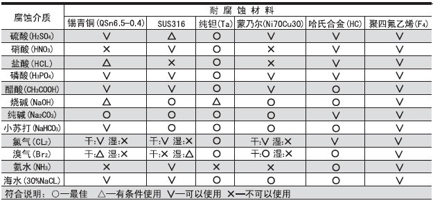 隔离片材料可根据被测介质情况选用钽(Ta)或奥氏体不锈钢耐腐钢(Cr18Ni12Mo2Ti,1Cr18Ni9Ti)及聚四氟。