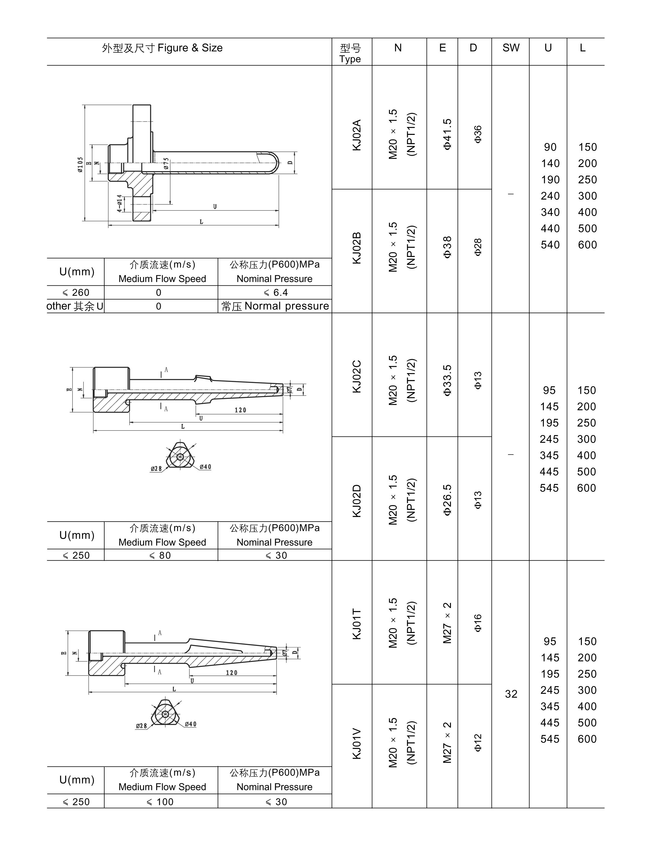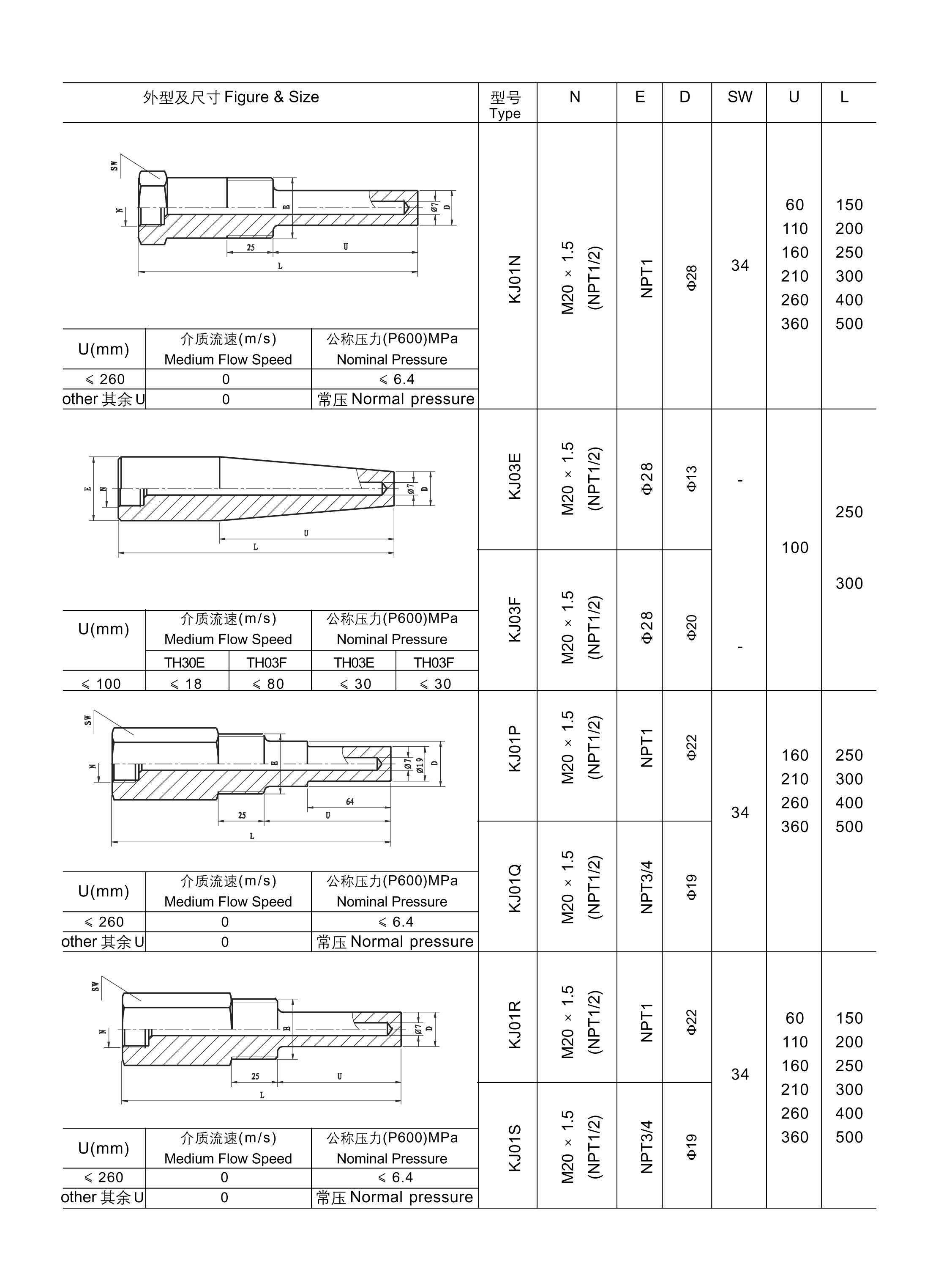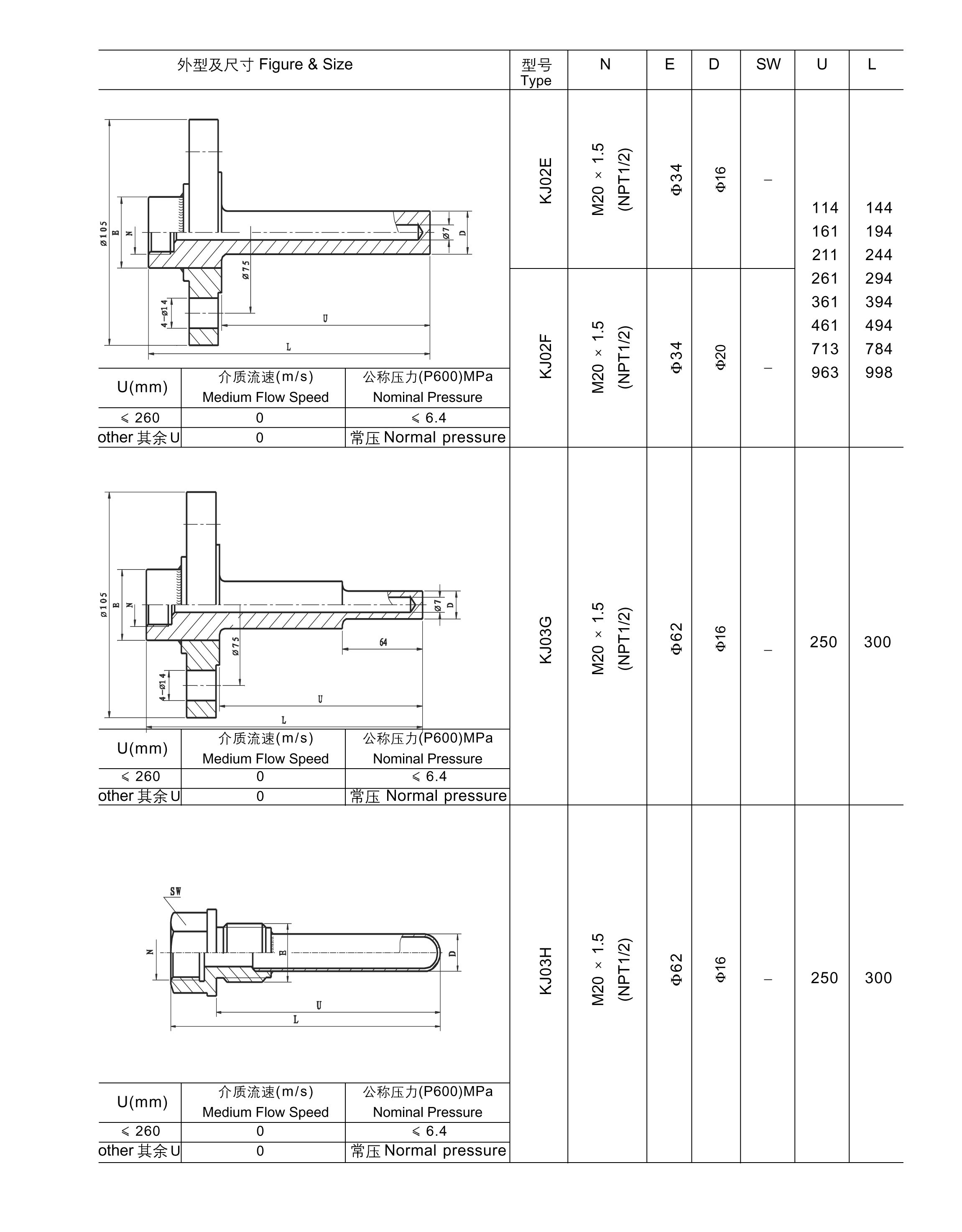 与两节式热电偶/热电阻和双金属温度计配套使用,保护热电偶/热电阻和双金属温度计正常工作。且可用于高压高流速场合。