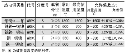 温度测量范围和允许误差