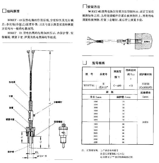 压簧式热电偶