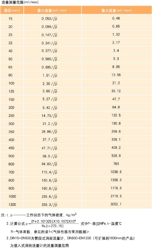 2DIN15DIN500为管段式涡街流量计,DN500DN1200(可扩展到1600mm的产品)为插入式涡街流量计的流量测量范围